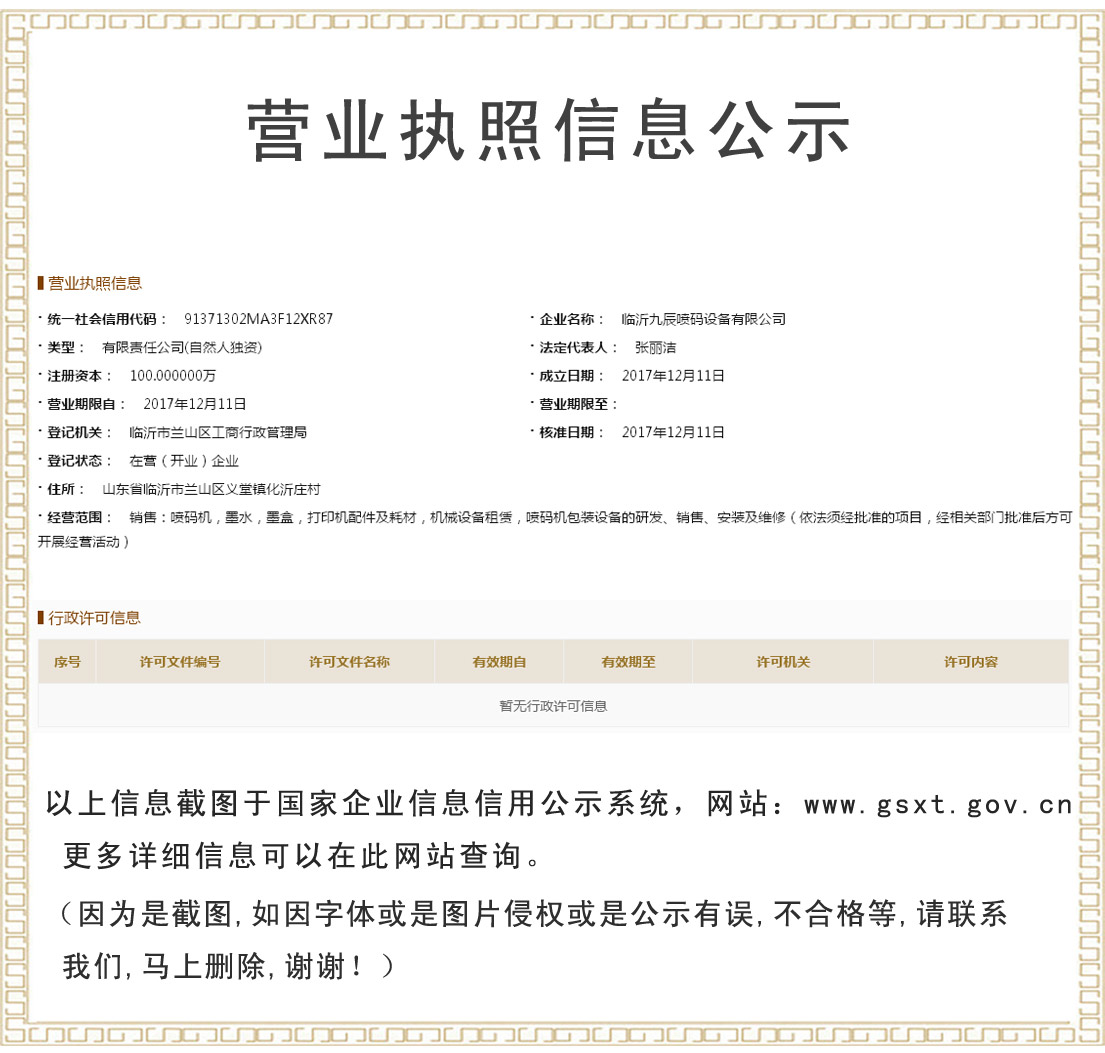 臨沂九辰噴碼設(shè)備有限公司坐落于中國(guó)的物流之都、板材之都-臨沂。本公司專(zhuān)業(yè)從事噴碼機(jī)銷(xiāo)售,維修及配件耗材的供應(yīng),擁有專(zhuān)業(yè)的技術(shù)人員和銷(xiāo)售售后服務(wù)人員,  擁有專(zhuān)業(yè)售后服務(wù)體系,我們可按各行業(yè)客戶(hù)需求提供全面的噴碼標(biāo)識(shí)解決方案和長(zhǎng)期的技術(shù)支持及優(yōu)質(zhì)快捷的售后服務(wù)。